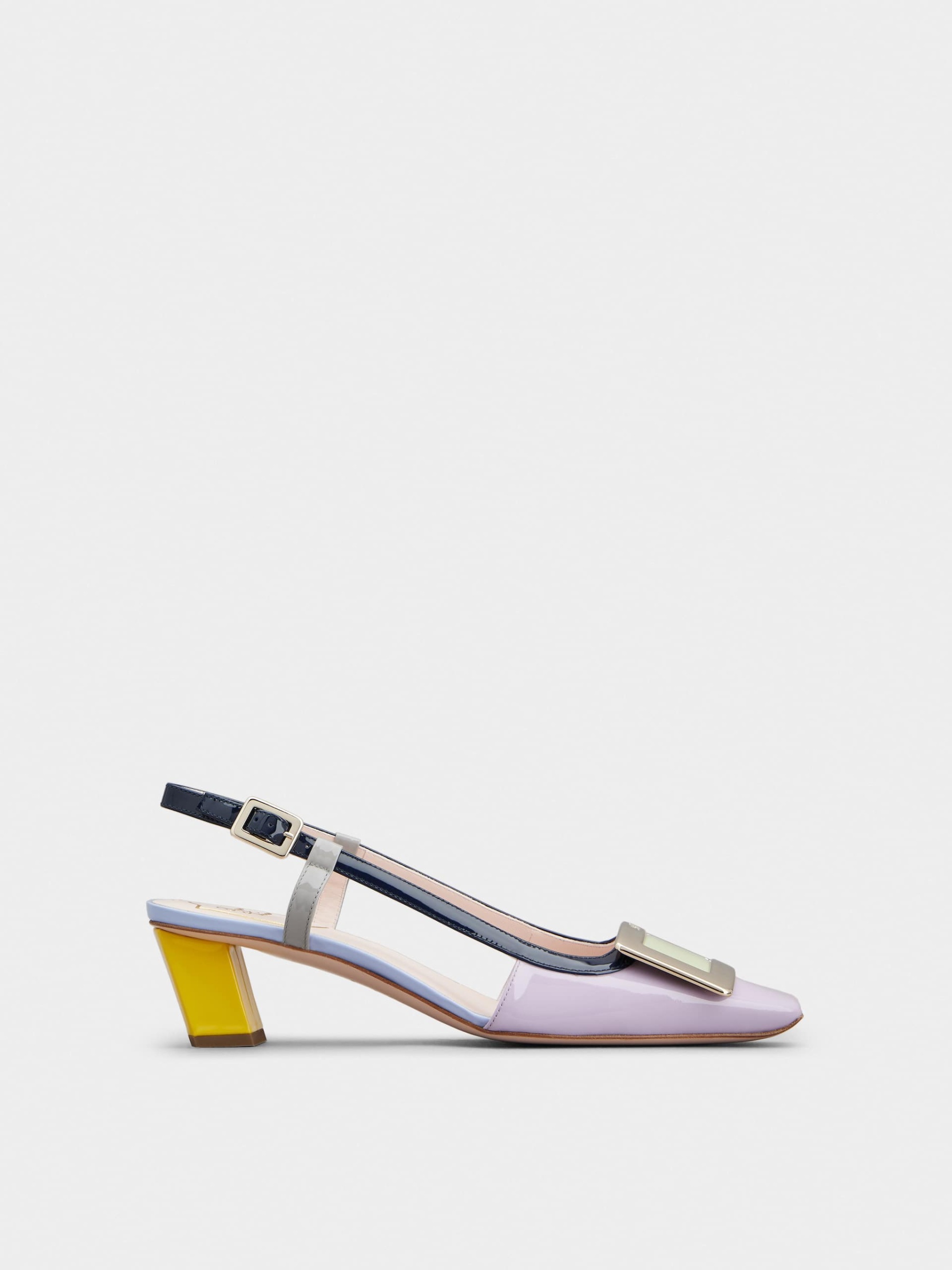 「ベル ヴィヴィエ」パテントレザー スリングバック パンプス 45 mm バイオレット, イエロー, ブルー